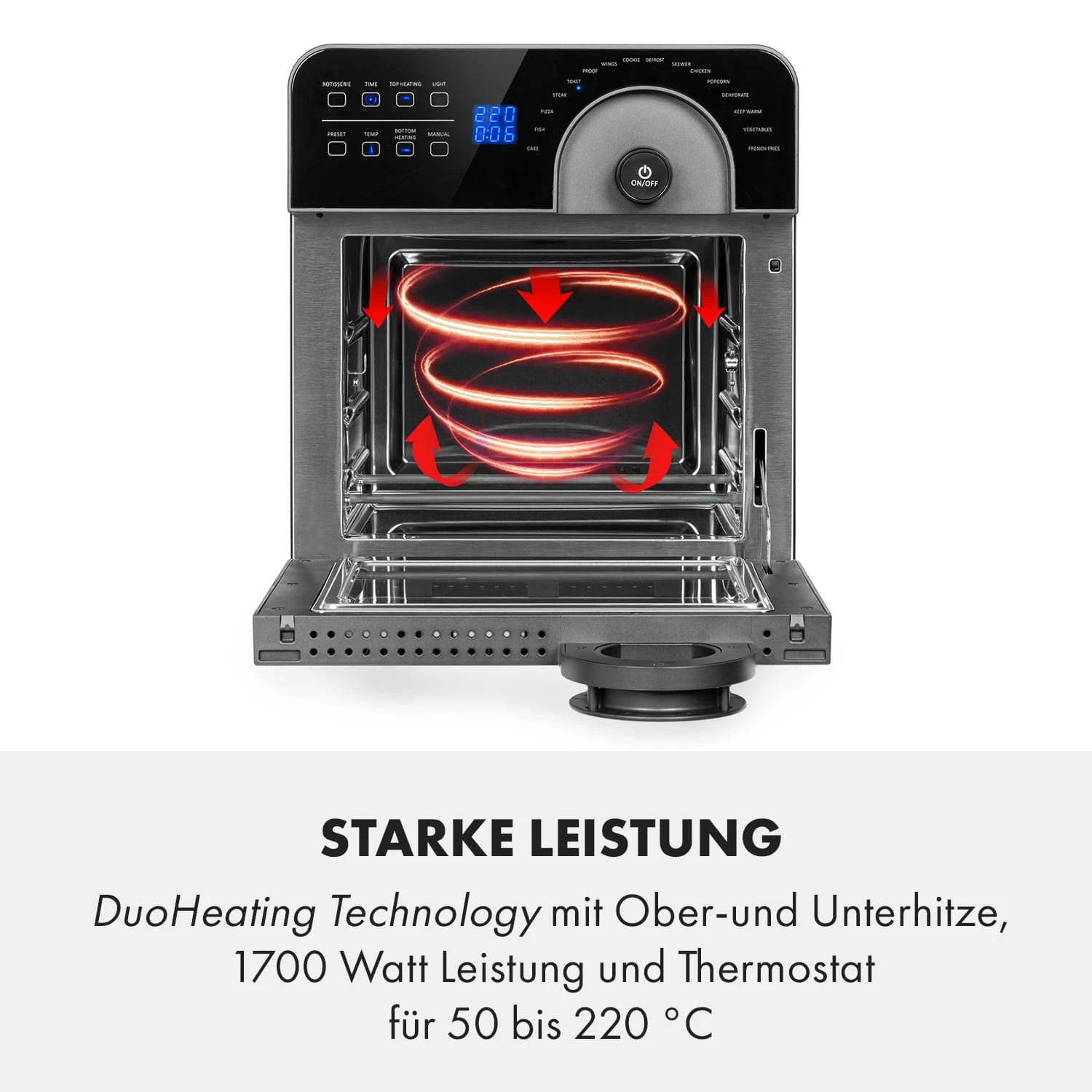 - Ober- und Unterhitze inkl. Umluftventilator