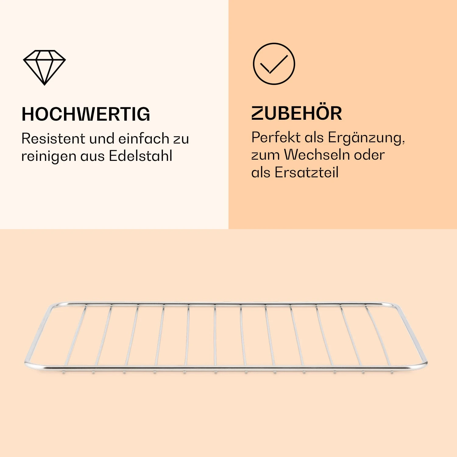 Auf dem Grillrost der AeroVital Jumbo Heißluftfritteuse von Klarstein kannst du nach Herzenslust Grillfleisch, Gemüse und Würstchen grillen. Der Rost ist komplett aus Edelstahl gefertigt. Dank der glatten Oberfläche ist er nicht nur äußerst langlebig, sondern auch einfach zu reinigen.