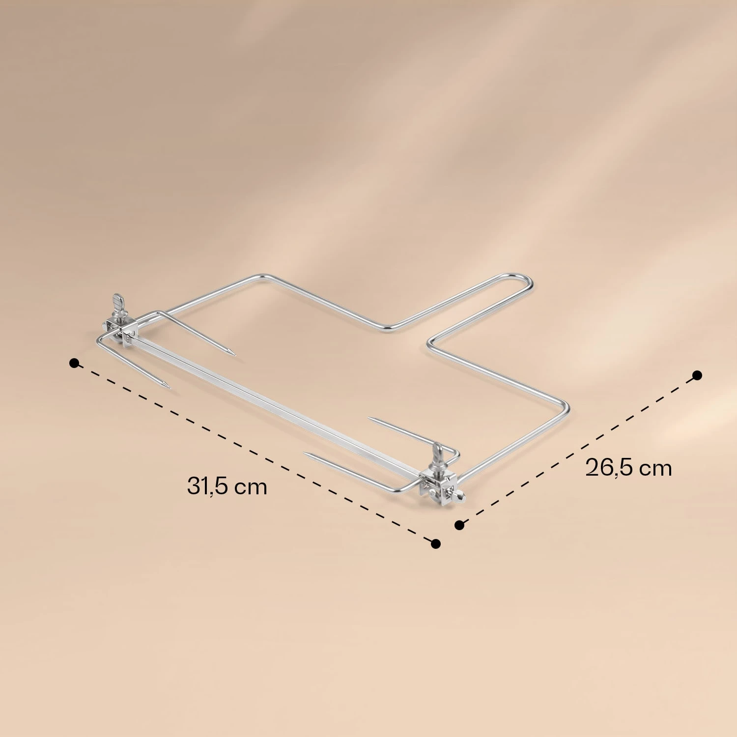 - Maße Rotisseriespieß: ca. 31,5 x 6 x 7,5 cm (BxHxT)