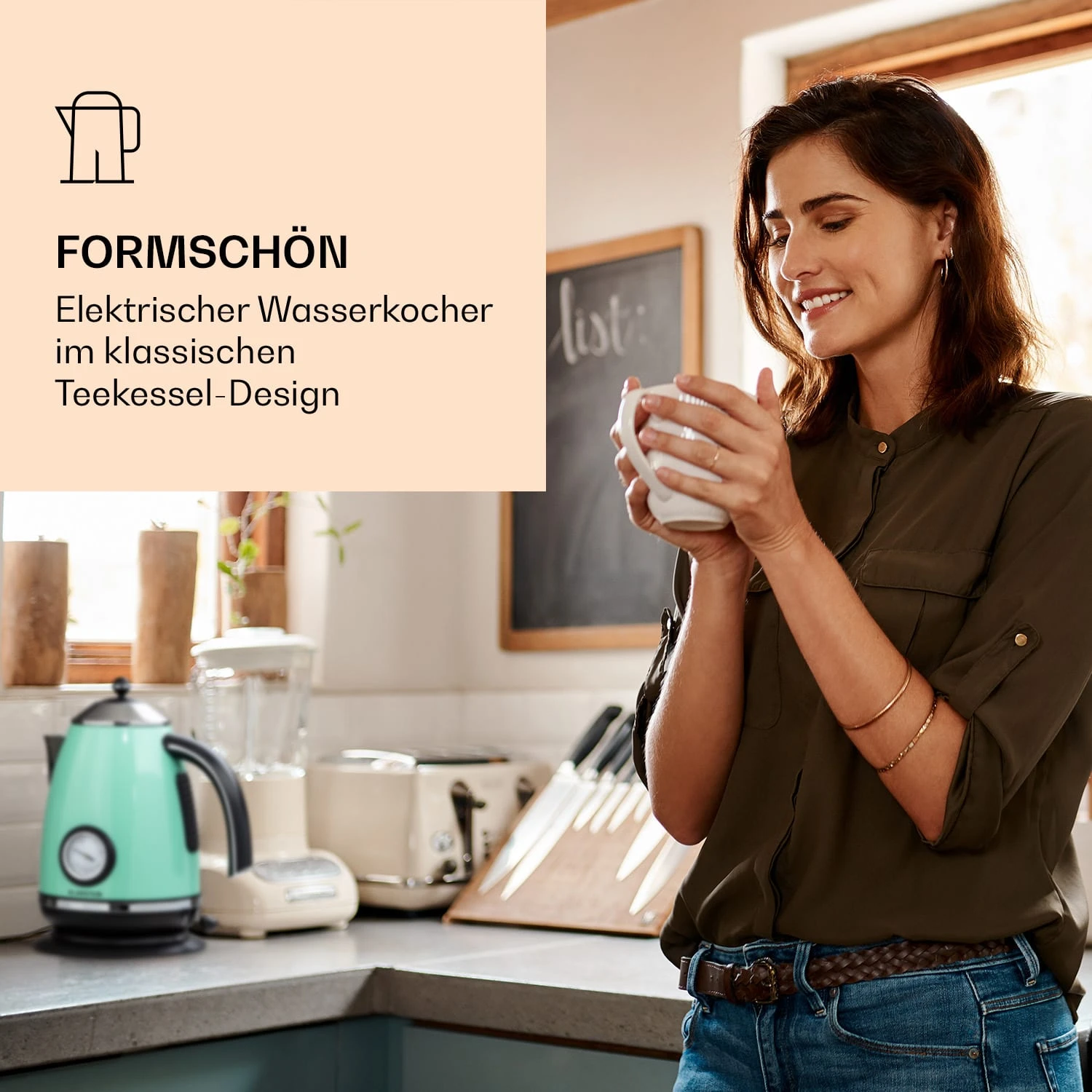 Das Gehäuse des Klarstein Aquavita Chalet Wasserkochers ist komplett aus rostfreiem Edelstahl gefertigt und orientiert sich in moderner Form am klassischen Teekessel-Design seiner funktionellen Urahnen. Seine geringe Stellfläche ermöglicht die Aufstellung in nahezu jeder Küchenzeile.