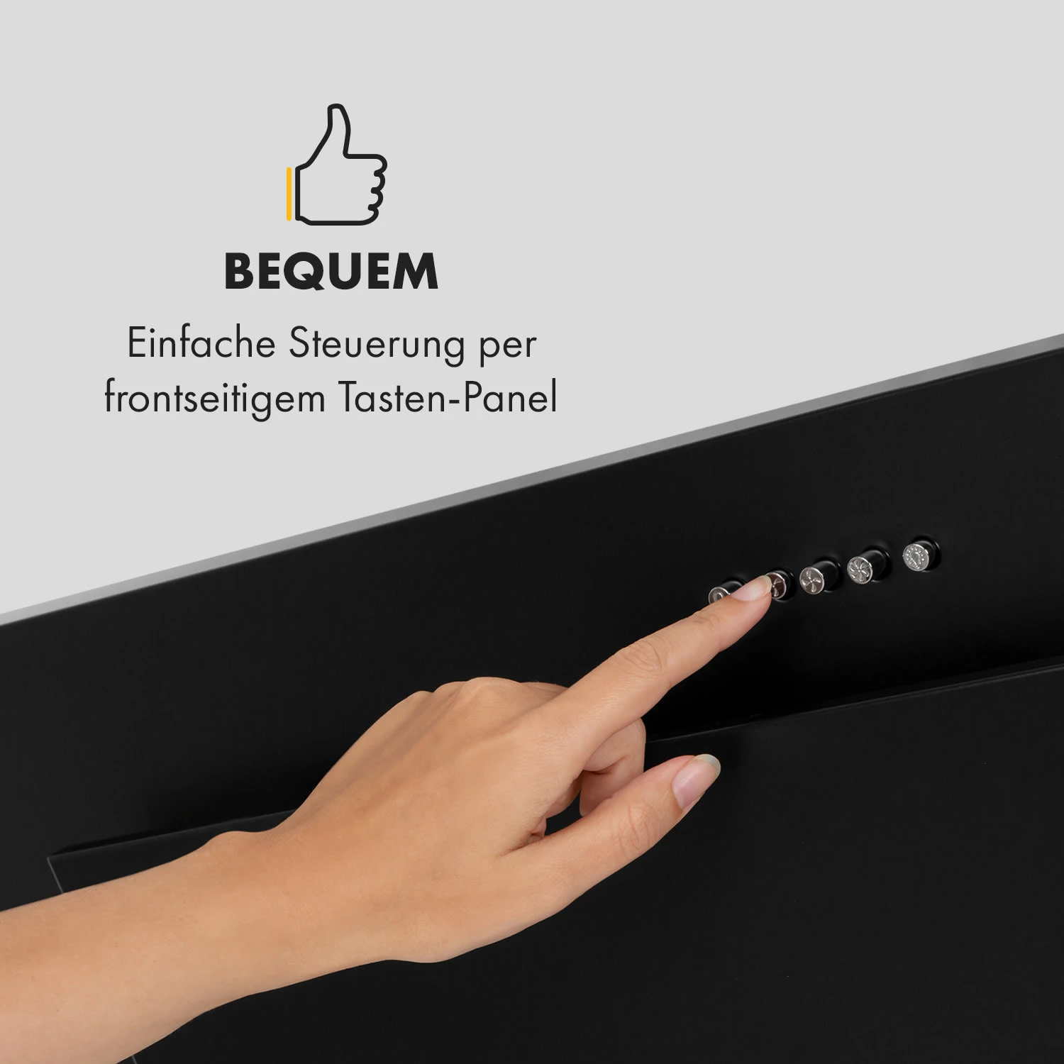 Beste Luft in kleinen bis mittelgroßen Küchen: Die Klarstein Athena Dunstabzugshaube ist ein edler Glanzpunkt und beseitigt schwungvoll Dampf und Dunst beim Kochen. Mit 69 Watt Motorleistung, 3 Geschwindigkeiten und bis zu 300 m³/h Abluftleistung sorgt sie für freie Sicht. Neben den starken Leistungsdaten überzeugt die Klarstein Athena Wandabzugshaube als luxuriöser Teil der Kücheneinrichtung: Sie verleiht jeder Küche ein modernes Aussehen, das durch eine 2-teilige Kaminverkleidung ergänzt wird.