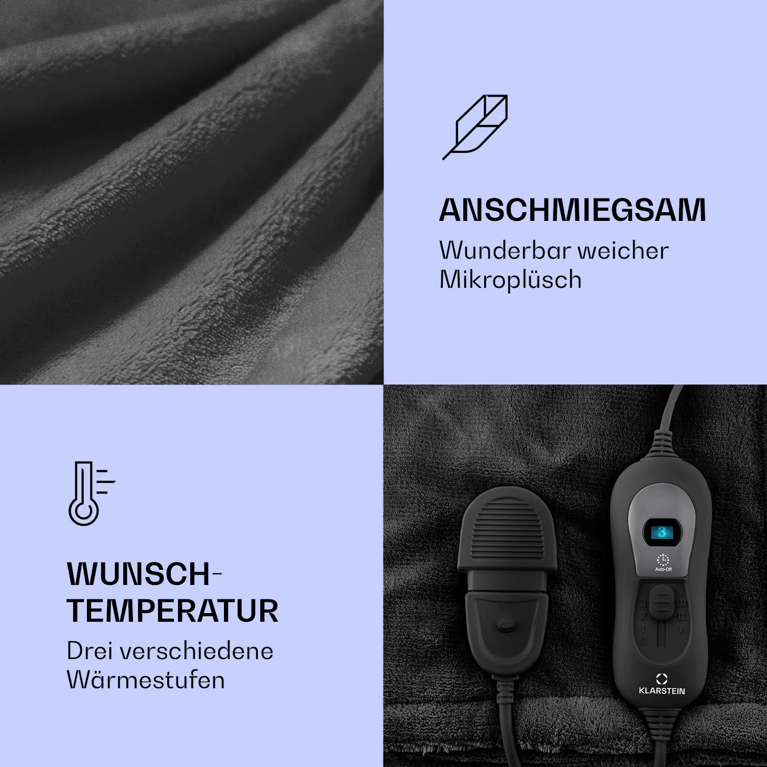 - Temperatur: 3 Leistungsstufen