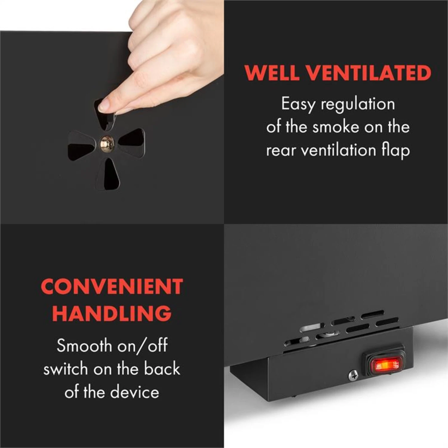 - Räucherroste verchromt und herausnehmbar für einfache Reinigung