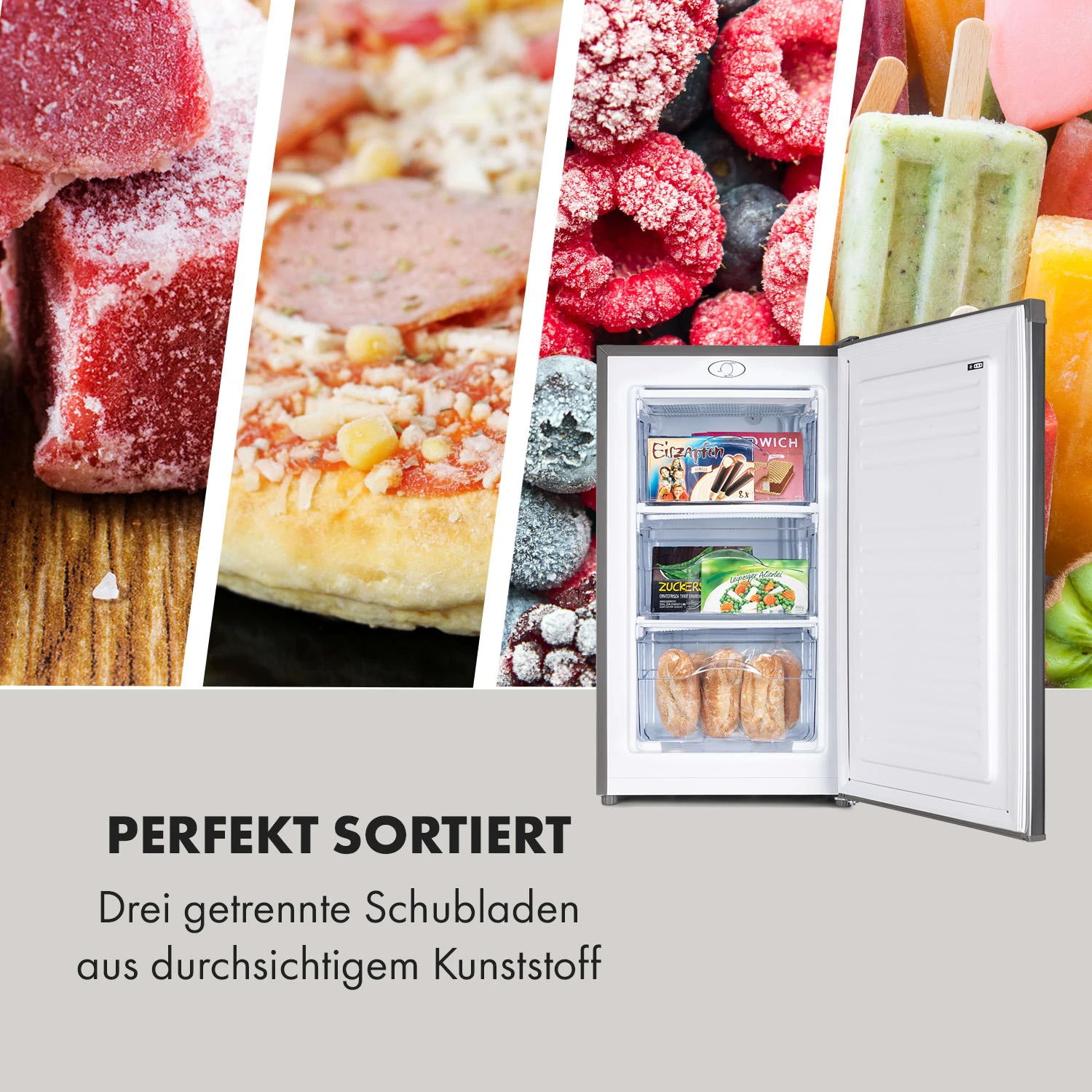 Der Klarstein Garfield Eco L ist ein kompakter und sparsamer Gefrierschrank, der frischen Wind in die Küchen von Singles, Kleinfamilien oder Paaren bringt. Mit ihm steht dir eine Menge Raum für die Lebensmittellagerung zur Verfügung. Dabei gelingt es dir, dank der 3 herausnehmbaren Schubladen Ordnung in dein Tiefkühlgut zu bringen. Sein klares Design mit gebürsteter Edelstahlfront verleiht dem Gerät außerdem eine moderne Eleganz, mit der es sich nahtlos in jede Küchenlandschaft einfügt.