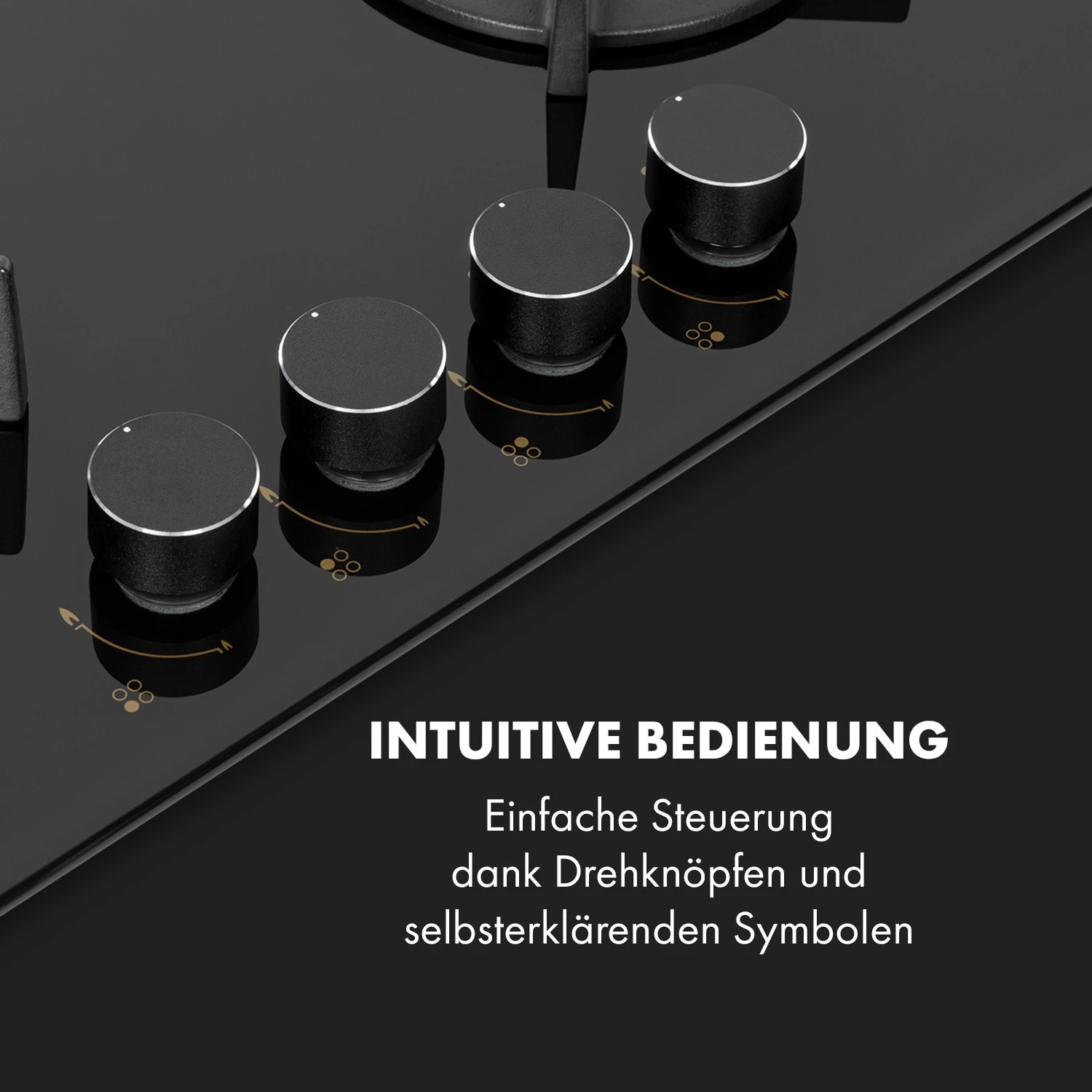 Auf dem platzsparenden Klarstein Goldflame Kochfeld befinden sich vier hochwertige Brenner, die mit einer Leistung von 3,4 kW, 2 x 1,8 kW und 1,0 kW ordentlich einheizen. Wie der Name sagt, haben wir für die Goldflame-Reihe hochwertige Messing-Brenner gewählt, da diese nicht nur edel aussehen, sondern auch eine wesentlich höhere Lebensdauer als herkömmliche Aluminiumbrenner besitzen und zugleich für eine bessere Hitzeverteilung auf dem Kochfeld sorgen. Ein Unterschied, den du sehen und spüren kannst. Alle Brenner verteilen die Hitze gleichmäßig in der Mitte und an den Rändern der Töpfe oder Pfannen, alles wird perfekt und bestmöglich gegart. Das Kreuz aus massivem Gusseisen ist für beinahe alle Arten von Kochgeschirr geeignet und sitzt passgenau und kippsicher über den Flammen. Dabei ist die Bedienung dank der selbsterklärenden Symbole an den großen Drehknöpfen absolut intuitiv, die Hitzezufuhr kann während des Kochvorgangs immer wieder direkt angepasst werden. Denn hier liegt auch der große Vorteil von Gasherden: Änderungen an der Flammengröße wirken sich unmittelbar in Temperaturänderungen an Topf oder Pfanne aus. Natürlich haben wir auch auf die Sicherheit am Herd geachtet: Zusätzliches Feuer zum Entzünden ist nicht nötig. Die Gasflamme wird einfach per SnapJetIgnition entfacht. Der Flammenausfall-Schutz schließt die Gaszufuhr zum Brenner, sollte die Flamme aus irgendeinem Grund einmal ausfallen.