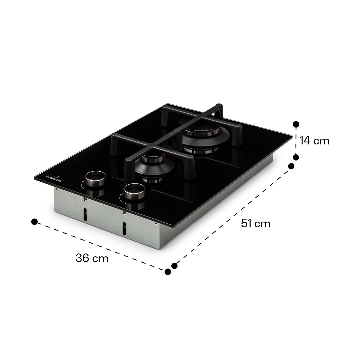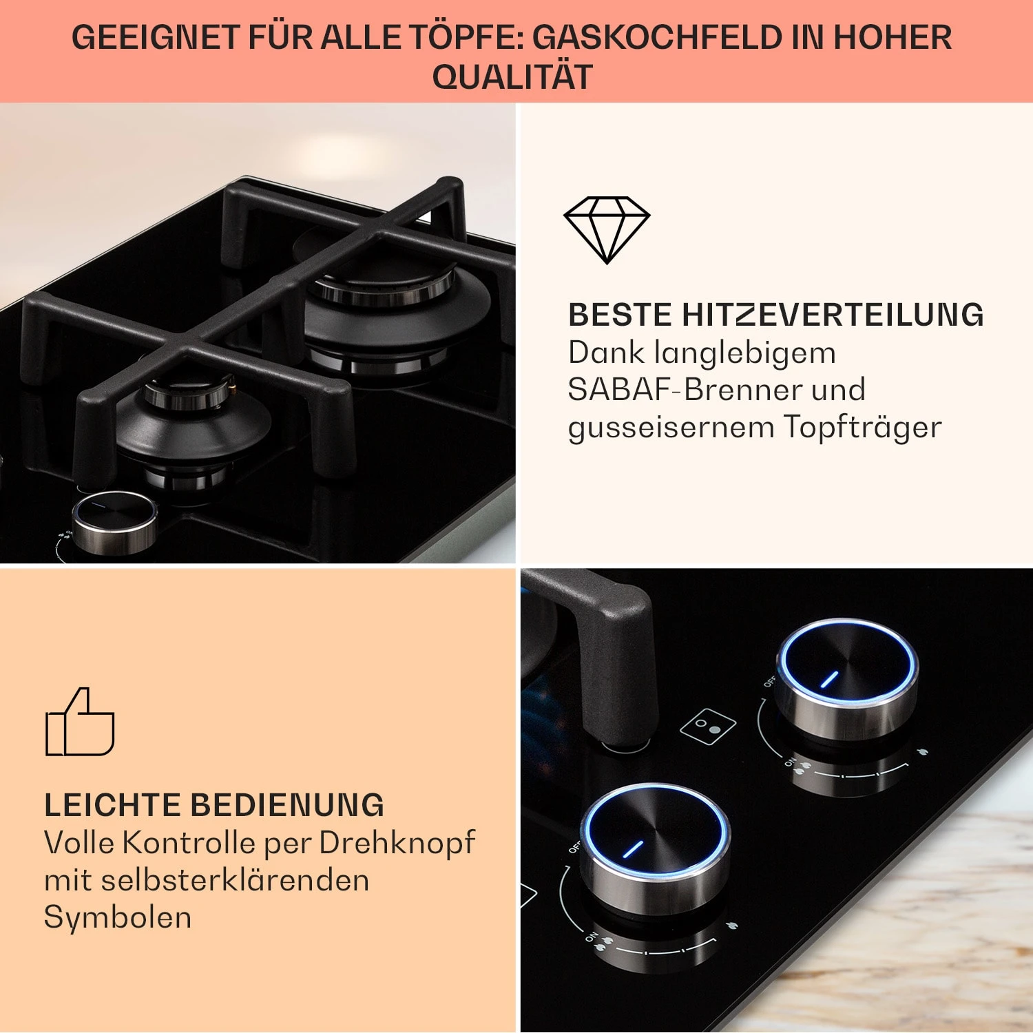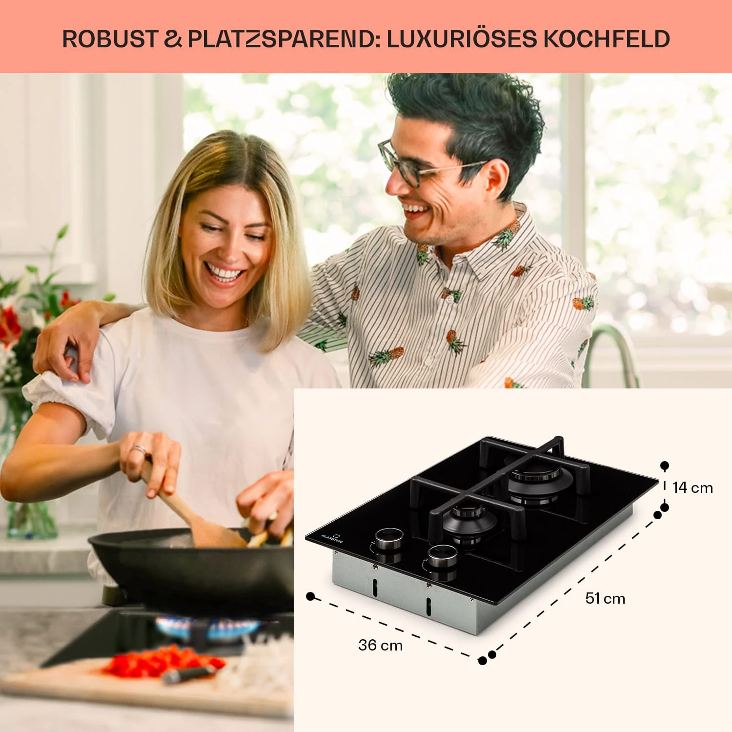 Illuminosa Domino Gaskochfeld 2-flammig Sabaf-Brenner Glaskeramik