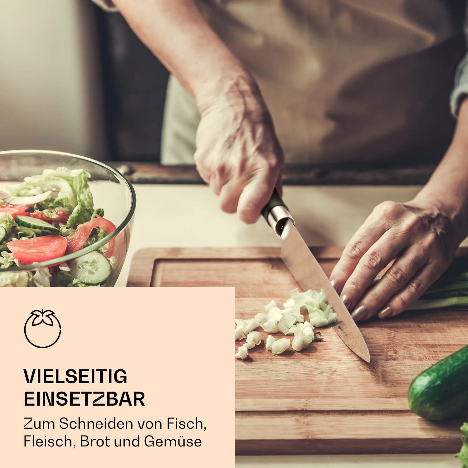 - einfache Aufbewahrung langer Messer: stets griffbereit und sicher