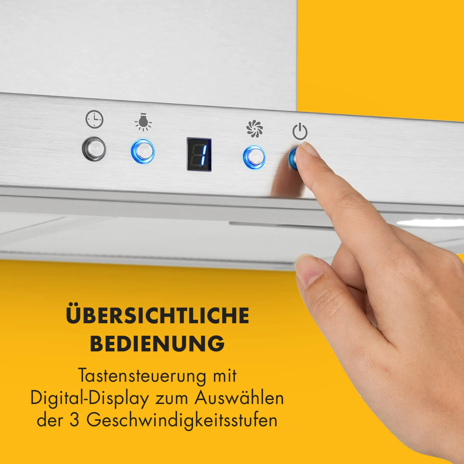 Mit 60 cm Breite ist die Klarstein Limelight Dunstabzugshaube für kleine bis mittelgroße Kochflächen und Küchenzeilen bestens geeignet. Die höchste Leistungsstufe befördert pro Stunde bis zu 600 Kubikmeter Abluft aus der Küche und wird so auch mit der Zubereitung mehrerer Gänge fertig. Dank moderner Technik schont sie durch reduzierten Stromverbrauch den Geldbeutel und die Umwelt. Die einfache Bediensektion an der Frontseite ermöglicht die Wahl der drei Ventilationsstufen. Ein Abschalttimer lässt die Haube nach dem Kochen nachlüften und schaltet sie dann selbstständig ab. Zwei integrierte Leuchten sorgen für viel Licht auf Kochfläche, sodass passionierte Köche genau sehen, was sie gerade tun.