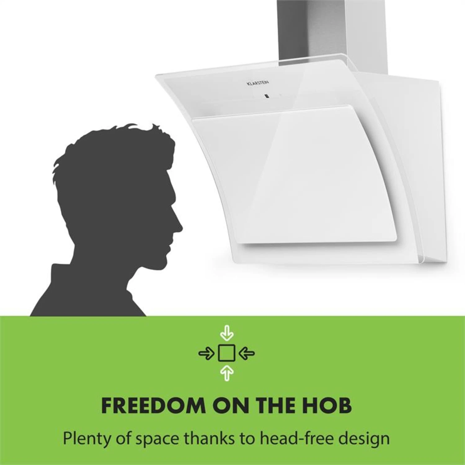 Jetzt kommen Schwung und Glanz in die Küche – und ganz nebenbei beseitigt die Klarstein Sabia Dunstabzugshaube auch Dampf und Essensgerüche.
