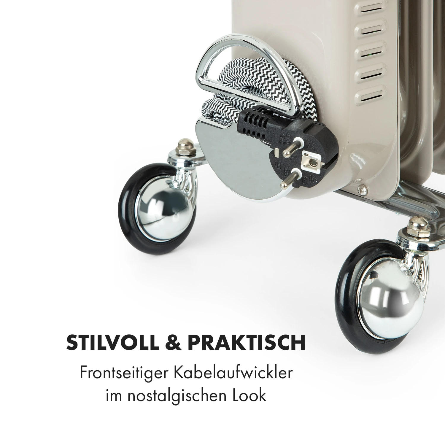 Leistungsstarker Wärmespender im stilvollen Retro-Design: Der Klarstein Thermaxx Retroheat ist ein kompakter, einfach zu bedienender Ölradiator im nostalgischen Look.